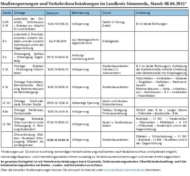 Am Montag wurde die Verbindungsstraße zwischen den beiden Orten feierlich dem Verkehr übergeben. In Kürze wird auch die sanierte Strecke zwischen Elxleben und Kühnhausen eröffnet werden (geplant: 01.06.2015).