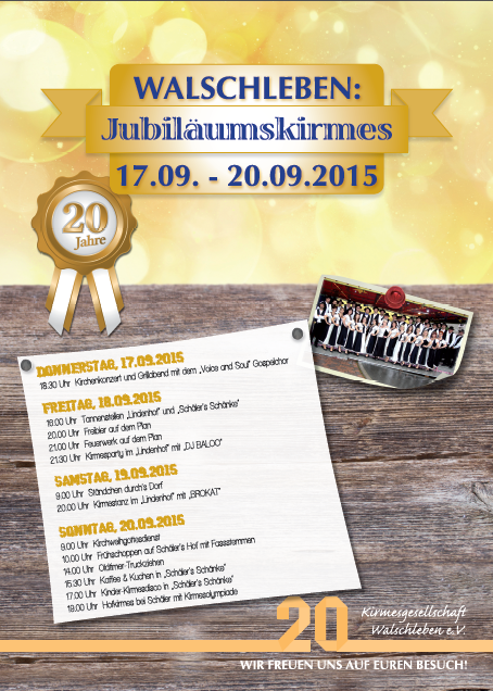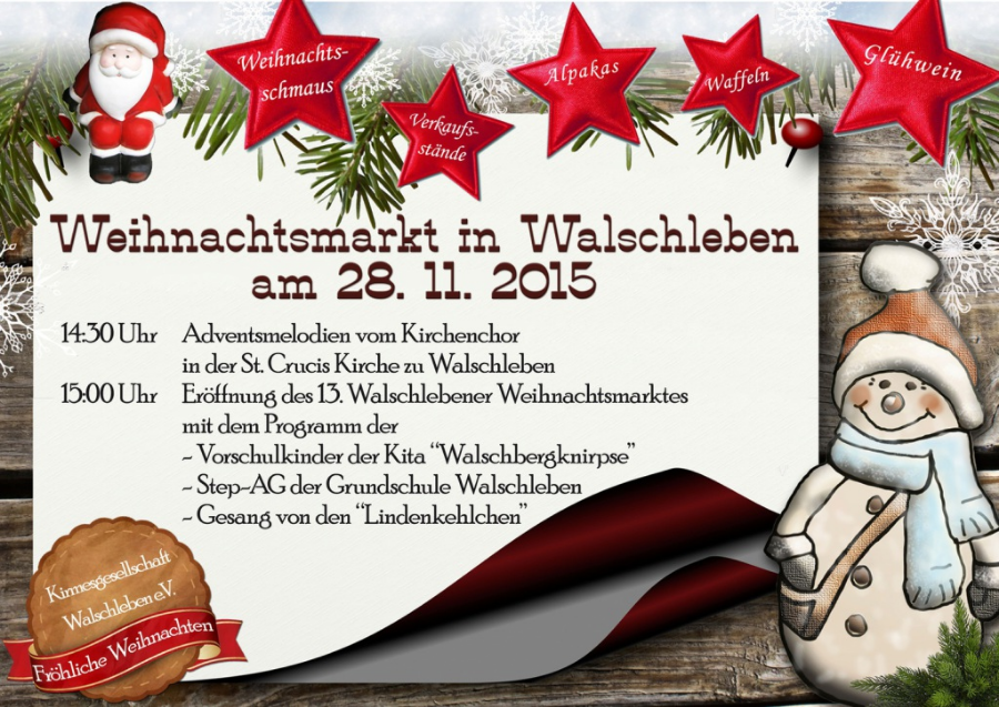 Am Freitag den 15.01.2015 trafen sich auf Einladung des Sozialausschusses der Gemeinde Walschleben die Vertreter aller Vereine Walschlebens um über ihre Vorhaben f25ents vom Lindenblütenfest, über die Kirmes, den REWE-CUP bis hin zum Fasching und Weihnachtsmarkt geben. Eine Übersicht über alle Termine finden Sie auf dieser Seite.
